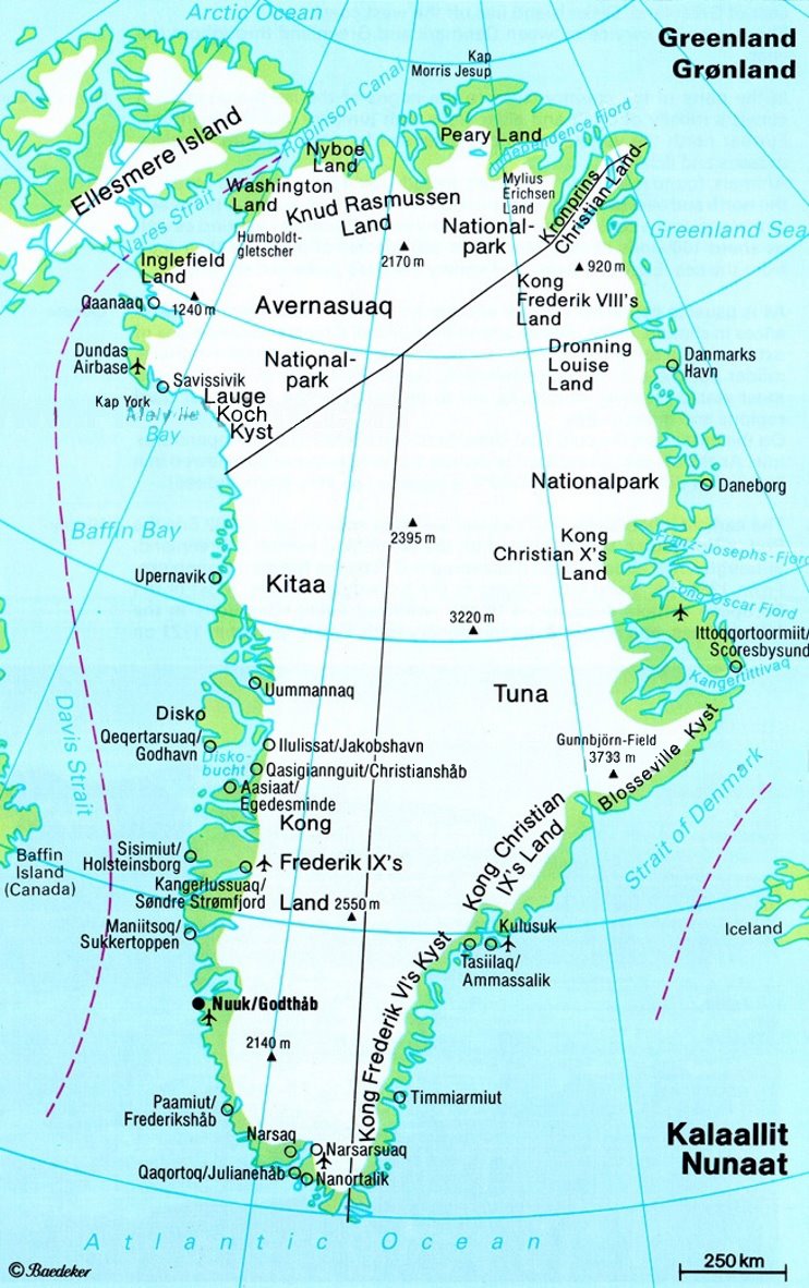 Размеры этой крупномасштабной карты Гренландии - 1080 X 1670 пикселов, размер файла - 136339 байтов. Вы можете открыть, скачать и распечатать эту карту кликнув по карте вверху или по этой ссылке: Открыть карту Гренландии.