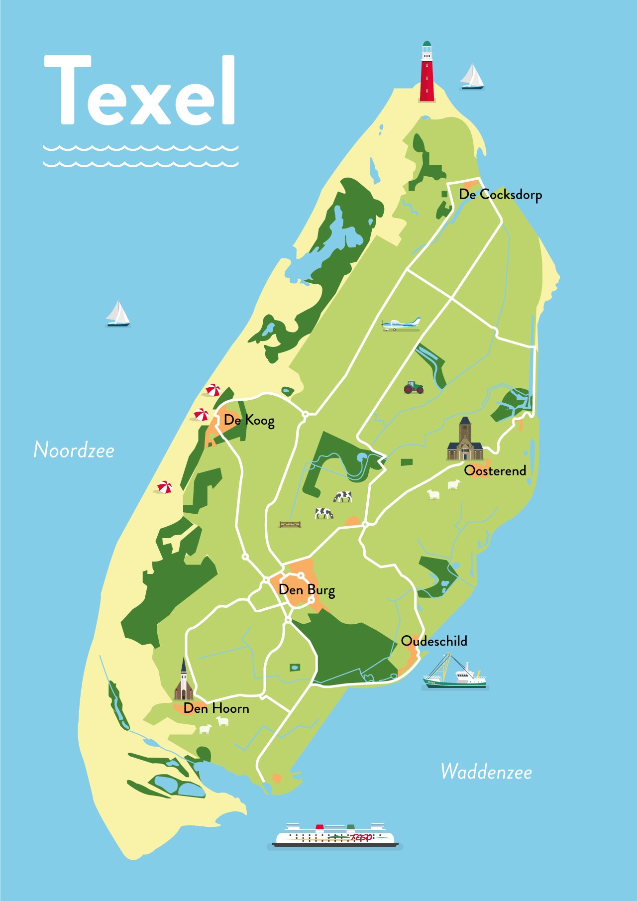 Размеры этой крупномасштабной карты острова Тексел - 2500 X 3698 пикселов, размер файла - 1670885 байтов. Вы можете открыть, скачать и распечатать эту карту кликнув по карте вверху или по этой ссылке: Открыть карту острова Тексел.